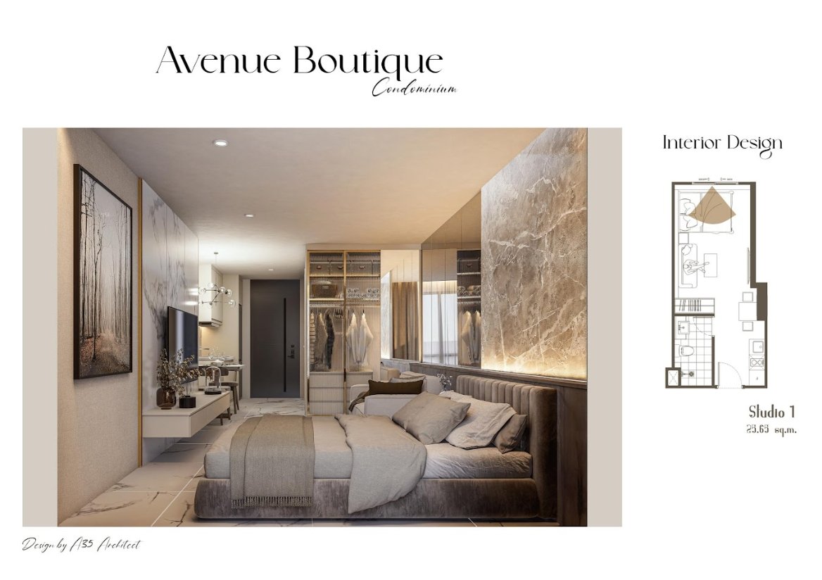 Introducing Avenue Boutique Condominium Thrilled to present the latest project, Avenue Boutique Condominium, perfectly situated in the vibrant heart of Pattaya on Soi Buakhao. located in Pattaya Soi 15, just 100 meters from the back of Avenue Shopping Center. This prime location is conveniently close to various popular attractions in Pattaya, easily accessible by walking. The condominium is approximately 1.5km from Pattaya Beach and just 2 km from Walking Street. Low rise condo consisting of 2 buildings with a total of 276 units. It features a modern design and is equipped with comprehensive amenities, including: Steam Room,Sauna and Interactive Gym. Exclusive Pre-Sale Promotion Announcing a limited-time pre-sale promotion with only 20 units available at exclusive prices!